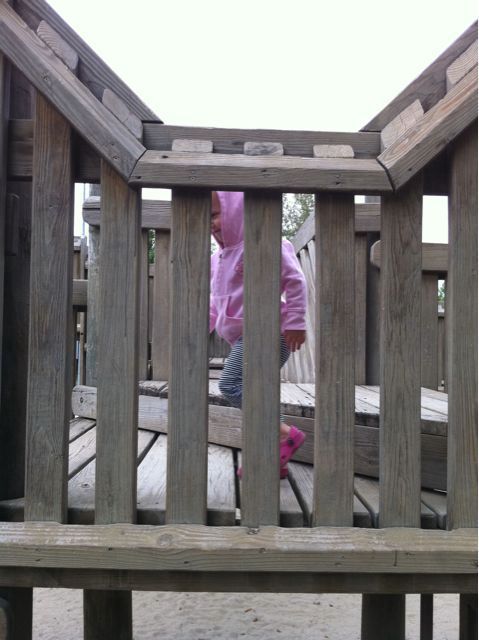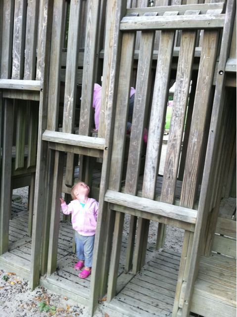 Keeping Track September 12, 2010, at 9:10 pm | These days, it’s tough to keep track of both girls at the park. Well, more specifically, it’s tough to keep track of Becky at the park. She’s just a pink hooded blur scampering from one structure to another.